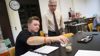 Student and professor in lab