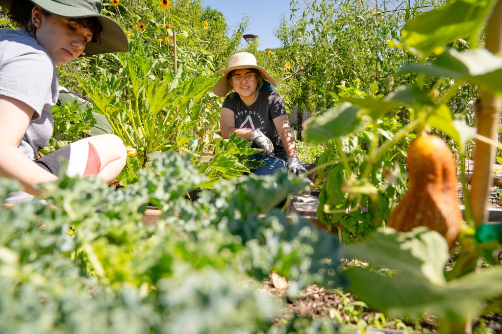 Pacific students and the local Stockton community come together in the Ted and Chris Robb Garden to harvest fresh-grown fruits and vegetables and celebrate sustainability in the community. Garden Coordinator Janice Stetson organizes a rotating team of student volunteers who tend to the garden and assist with events year-round, including regular garden markets and an annual Gardens-Giving outdoor meal.