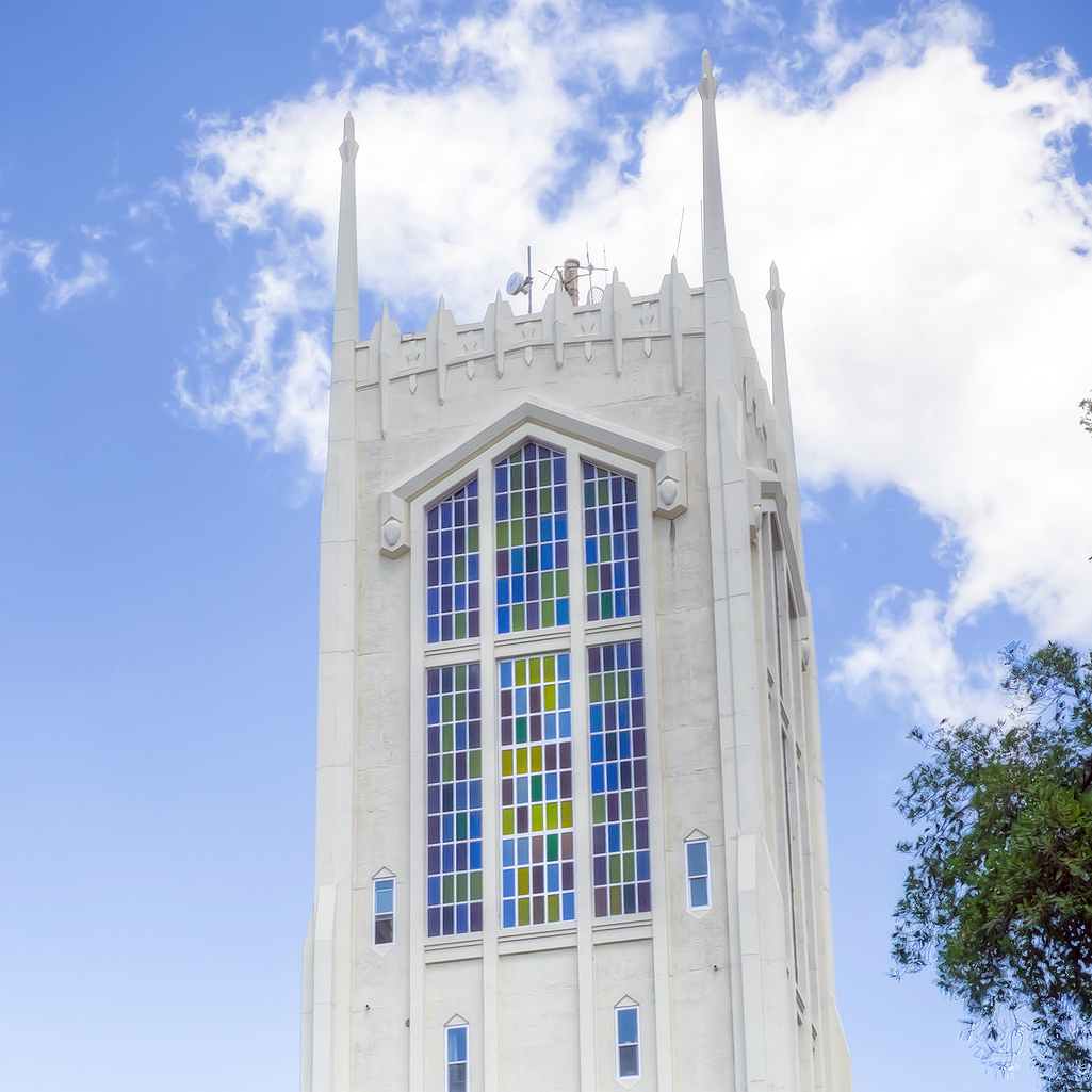 While this area is tucked away, it’s easy to find. Start by heading to Pacific Avenue, which runs along the east side of campus. At the traffic light, turn onto campus and head right toward Burns Tower.