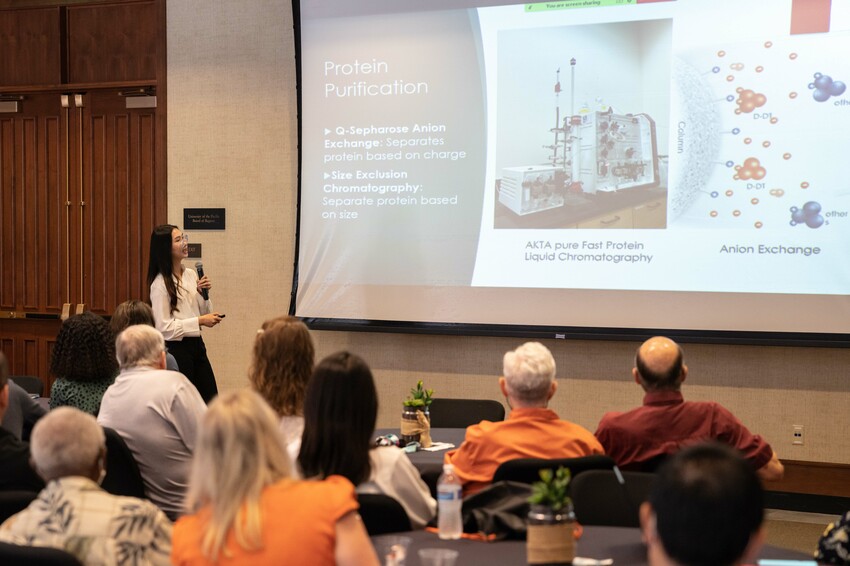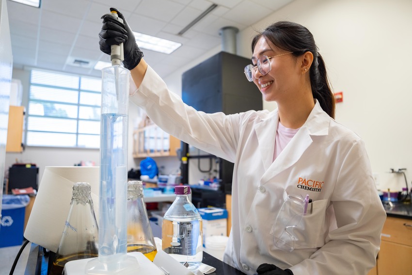 Lauris Dang ’24 moved from Vietnam to Stockton only six years ago. When she came to Pacific to major in biochemistry, she discovered her passion for laboratory research. This summer, thanks to Pacific’s Stauffer Charitable Trust Challenge Grant, she has been able to work full time in Professor Georgios Pantouris’s lab at Pacific researching ways to fight cancer.